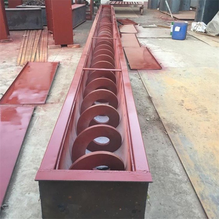 當螺旋軸轉(zhuǎn)動時,由于物料的重力及其與槽體壁所產(chǎn)生的摩擦力,使物料只能在葉片的推送下沿著輸送機的槽底向前移動,其情況好像不能旋轉(zhuǎn)的螺母沿著旋轉(zhuǎn)的螺桿作平移運動一樣。物料在中間軸承的運移,則是依靠后面前進著的物料的推力。所以,物料在輸送機中的運送,完全是一種滑移運動。為了使螺旋軸處于較為有利的受拉狀態(tài),一般都將驅(qū)動裝置和卸料口安放在輸送機的同一端,而把進料口盡量放在另一端的尾部附近。 旋轉(zhuǎn)的螺旋葉片將物料推移而進行輸送,使物料不與螺旋輸送機葉片一起旋轉(zhuǎn)的力是物料自身重量和螺旋輸送機機殼對物料的摩擦阻力。葉片的面型根據(jù)輸送物料的不同有實體面型、帶式面型、葉片面型等型式。